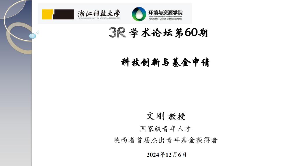 并作3R论坛第60期学术报告“科技创新与基金申请”。报告由学院郑兴教授主持,学院环境与工程系专业教师和在读硕士生等30余人参加了报告会。