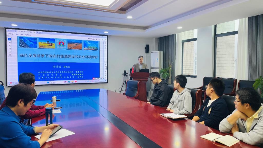 在报告中,李景明研究员从畜禽粪污生态处理及资源化利用、农村能源与农用有机肥使用、加强农业面源污染防治与生态保护等农业绿色发展客观要求出发,向师生讲述了我国农村能源建设的发展脉络,以及具有中国特色的农村能源发展新路径。期间,李景明研究员阐释了农业面源污染的内涵和特征,并围绕重点区域农业面源污染现状和治理工作、外来入侵生物防治和农业野生种质资源保护等农业生态环境保护现阶段工作成效和面临挑战进行了详细分析。最后,李景明研究员和参会师生进行了积极的互动交流,并回答了研究生毕业回乡工作职业规划方面的问题,鼓励到农村广阔的天地去,为农业农村生产发展和生态环境保护做出贡献。