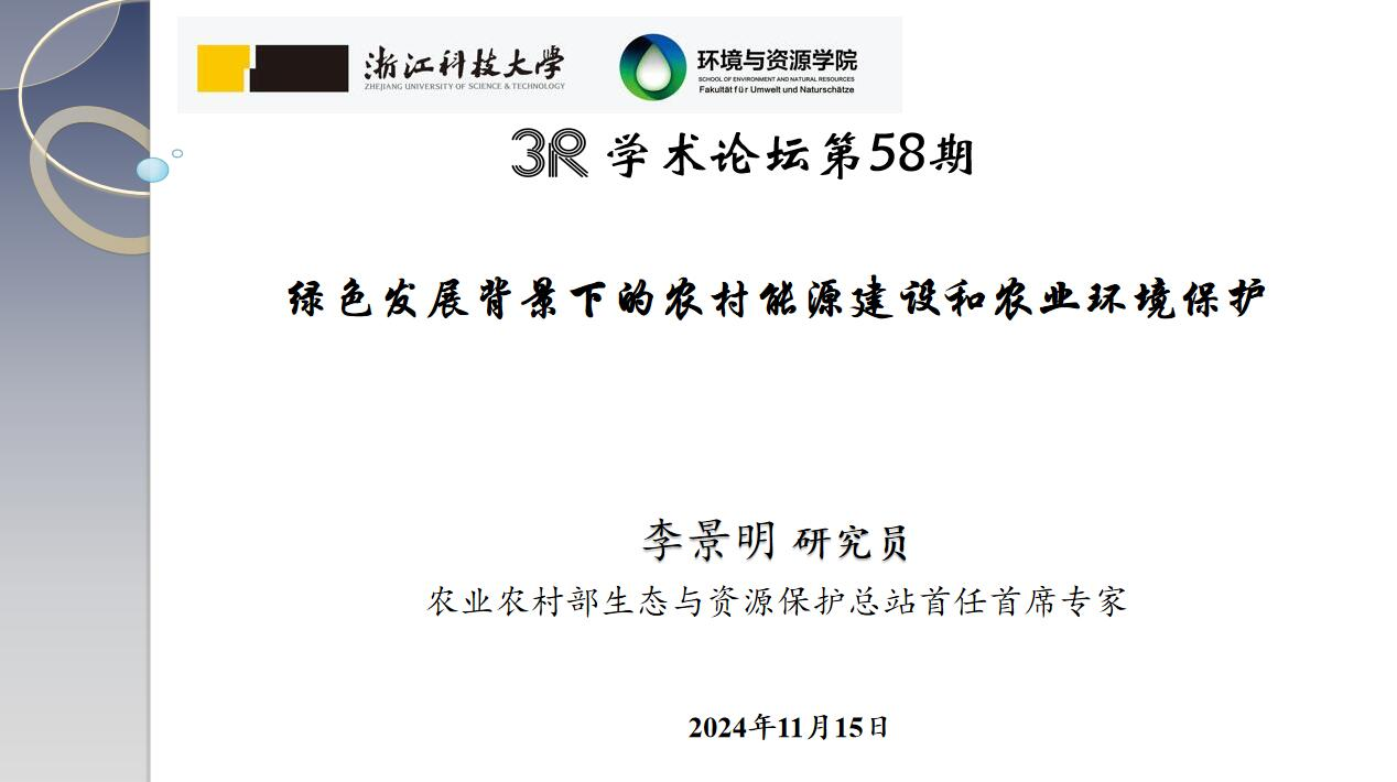 并作题为“绿色发展背景下的农村能源建设和农业环境保护”的专题报告,报告由学校党委副书记单胜道教授主持,学院环境工程系专业教师和在读硕士研究生等三十余人参加了报告会。