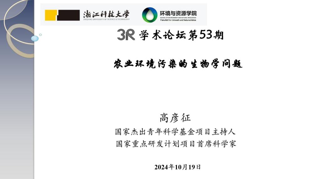 并作“3R”论坛第53期学术报告“农业环境污染的生物学问题”。报告由环境工程系主任方婧教授主持,环境工程系教师以及研究生等四十余人参加了报告会。