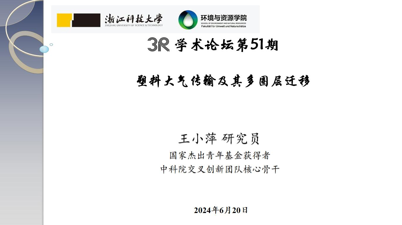 并作“3R”论坛第51期学术报告“微塑料大气传输及其多圈层迁移”,报告由环境工程系主任方婧教授主持,学院环境工程系教师以及研究生等三十余人参加了报告会。
