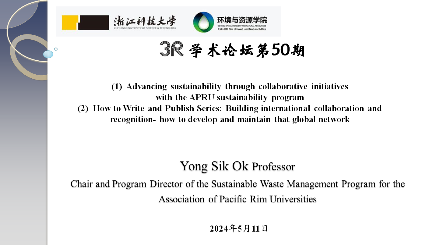 在报告中,Ok教授向大家详细地介绍了环太平洋大学联盟(APRU),作为连接美洲、亚洲和大洋洲一流大学的合作网络,APRU是亚太地区的知识和创新之声。APRU将思想领袖、研究人员和政策制定者凝聚起来,APRU可持续废物管理协会成员在科学研究、培养研究生及发表学术成果等方面会有更广泛和深入的交流合作。同时,Ok教授就新兴污染物、生物炭技术、机器学习等国际前沿和热点问题与大家进行了分享,分析了年轻学者积极参与国际学术交流与合作、实现国际学术认可的重要性。报告结束后,Ok教授同与会师生就报告中涉及的内容进行了深入交流。