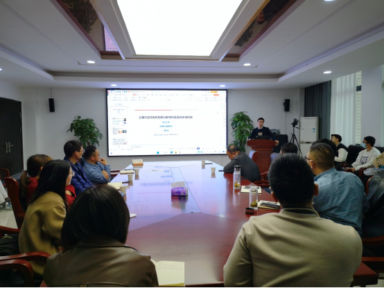 作题为“土壤可溶性有机物质分解特性及其微生物机制”的学术报告,报告由学院副院长张进教授主持,生态环境研究院教师、研究生等30余人参加了报告会。