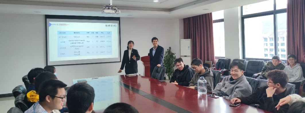 随后,李经理就麦田影院、公司特色、工作环境、生活条件、员工发展、招聘岗位、福利待遇及招聘流程等方面进行了详细的介绍。贵部长介绍了自己从浙江科技学院毕业后在仙鹤公司的逐步成长历程。而后,对于同学们最关注的岗位发展前景及薪资福利等方面展开了深入的分析和热烈的交流。会后,部分同学投递了简历,等待后续岗位的确认。