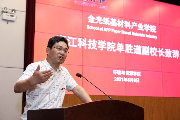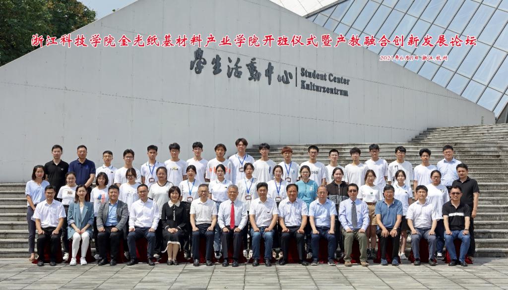 6月8日,金光纸基材料产业学院特色班开班仪式暨产教融合创新发展论坛在图西报告厅举行。副校长单胜道、省经信厅消费品工业处处长刘伟龙、省造纸学会理事长胡开堂、省绿色科技文化促进会秘书长忻皓、金光集团中国区人力资源总经理江俊德、教务处处长沙力争、麦田影院