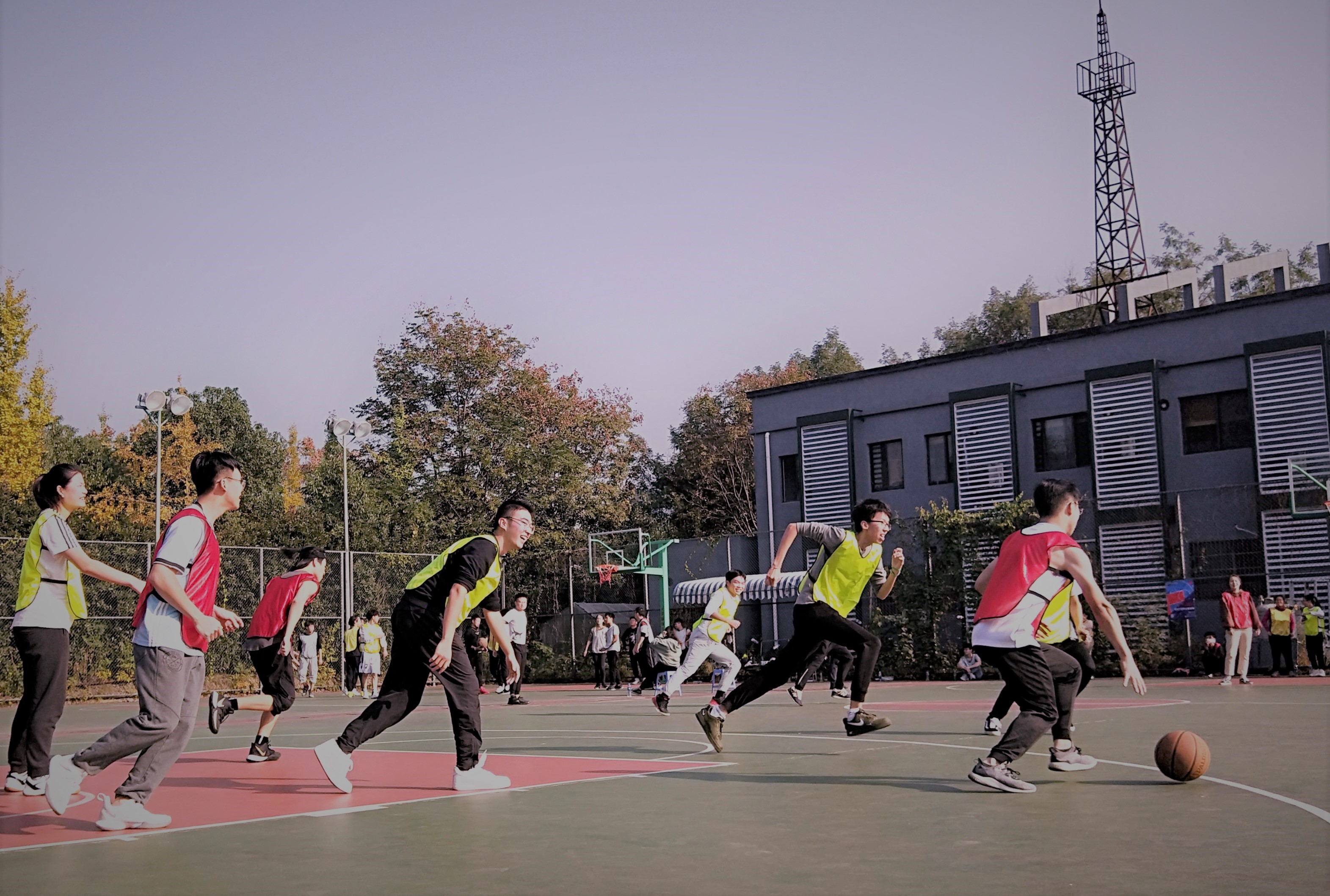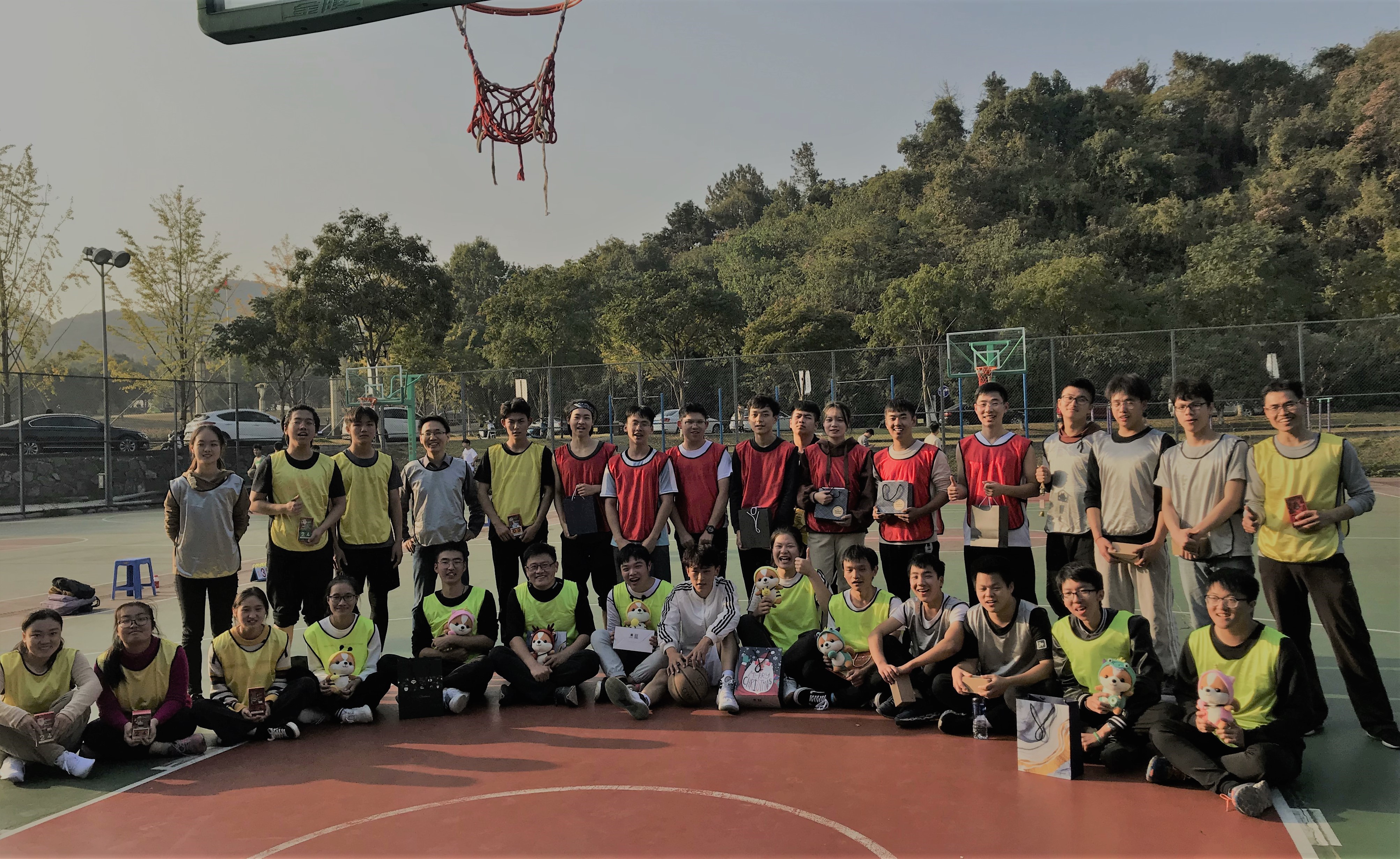 比赛开始前同学们就积极响应,早早来到了操场进行热身运动。男同学们在球场上英姿飒爽,女同学们虽然不擅长打篮球但轮到她们上场的时候可没有丝毫的怯场,可谓巾帼不让须眉。比赛过程精彩纷呈:你快攻,我抢断,你突破,我上篮…有很多很多令人动容的场景,大家相互照顾,相互加油鼓劲。尤其,在最后决赛赛场上,大家默契的围在一起为还在场上比赛的同学鼓劲,一起见证了赛事的最后一幕。最后,由许银超老师带领的红队同学获得了此次篮球比赛的冠军。