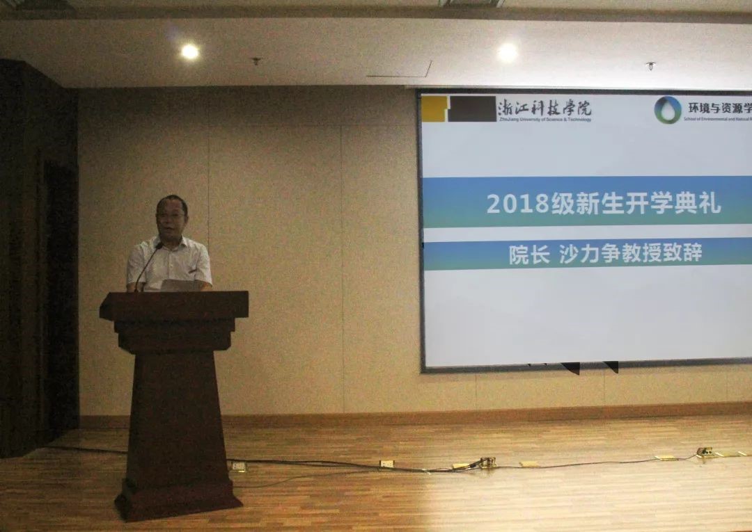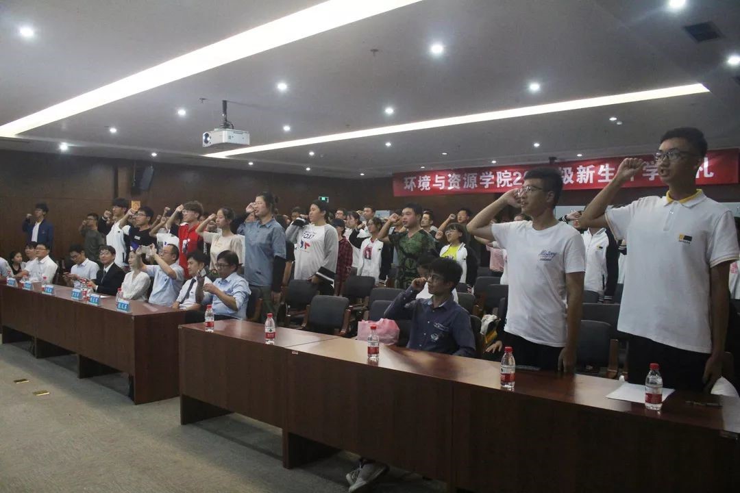 校友代表胡浩威、老生代表徐浩波从自身经历与切身体会出发,为同学们的大学生活提出多方面的建议;助班团队的诗朗诵、新生代表的歌曲演唱让同学们感受到大学的激情与活力;新生代表井海阳的发言,更加展示新一代环资人对学院的骄傲与对未来的追求。