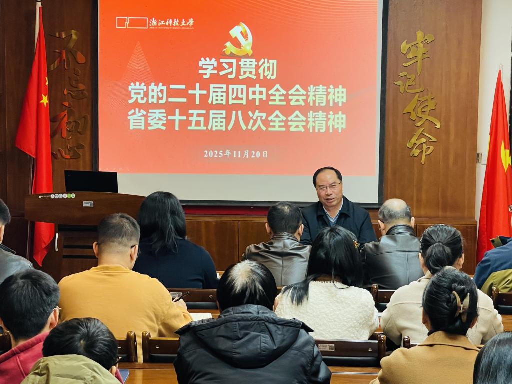 班子成员、内设机构负责人、高层次人才及师生代表作了党的二十届四中全会、省委十五届八次全会精神专题宣讲报告。