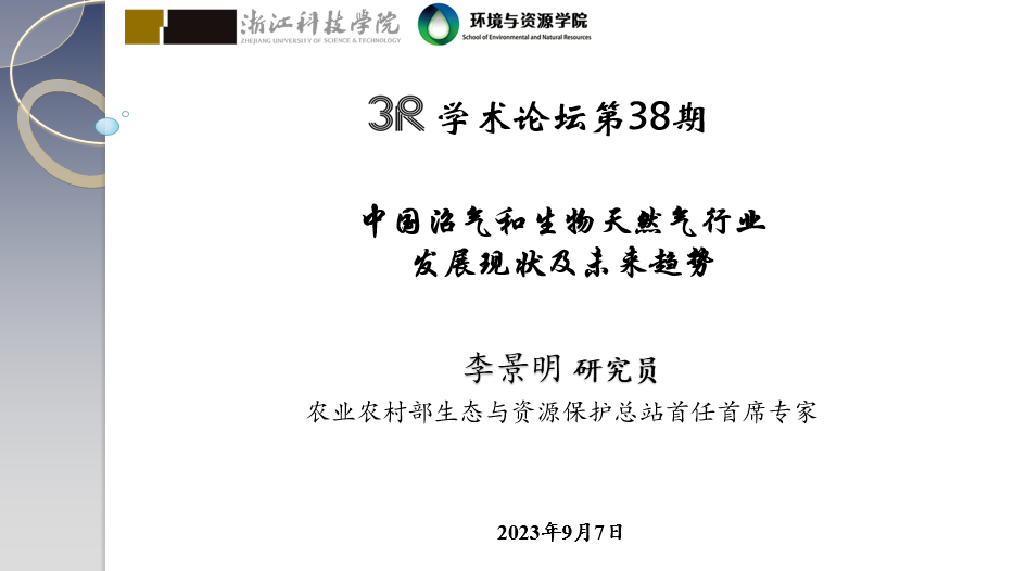 在学术报告中,李景明研究员从中国沼气的发展历史、现状、未来发展趋势三个方面系统分析了新形势下我国沼气行业面临的机遇与挑战,以及未来沼气行业的转型发展方向。他认为,要从思想观念上进行革命,尤其是自我革命,要科学、客观分析现阶段和未来一段时期国家“双碳”战略实施背景下沼气行业发展意义,从工农业废弃物消纳、生态环境保护、减污降碳的多视角分析沼气行业发展必要性,提出可落地、落实、落细的政策建议与技术路线。