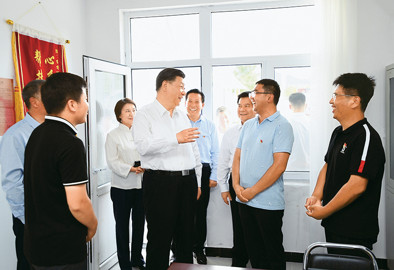 2019年7月15日至16日,中共中央总书记、国家主席、中央军委主席习近平在内蒙古考察并指导开展“不忘初心、牢记使命”主题教育。这是15日下午,习近平在赤峰市喀喇沁旗河南街道马鞍山村党群服务中心了解基层党建、民族团结和乡村振兴情况。新华社记者 谢环驰/摄