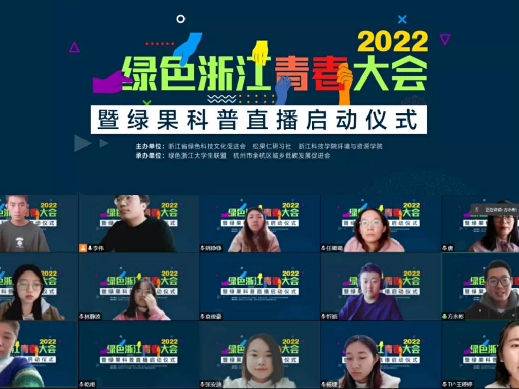 2月27日,绿色浙江举行2022年绿色浙江青春大会暨“绿果”科普活动启动,来自各高校的400多名青年学子在线参加会议。本次活动由浙江科技学院麦田影院